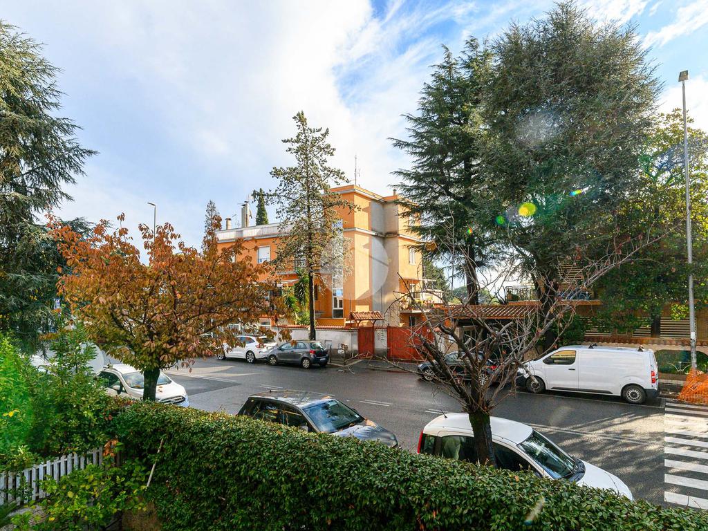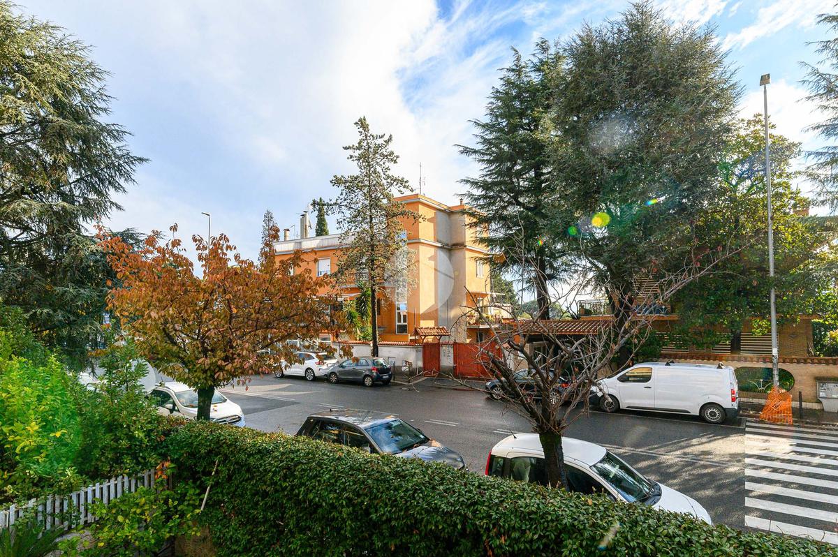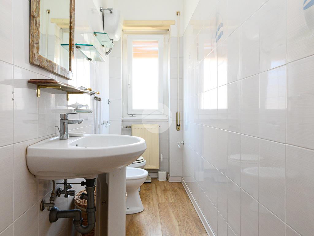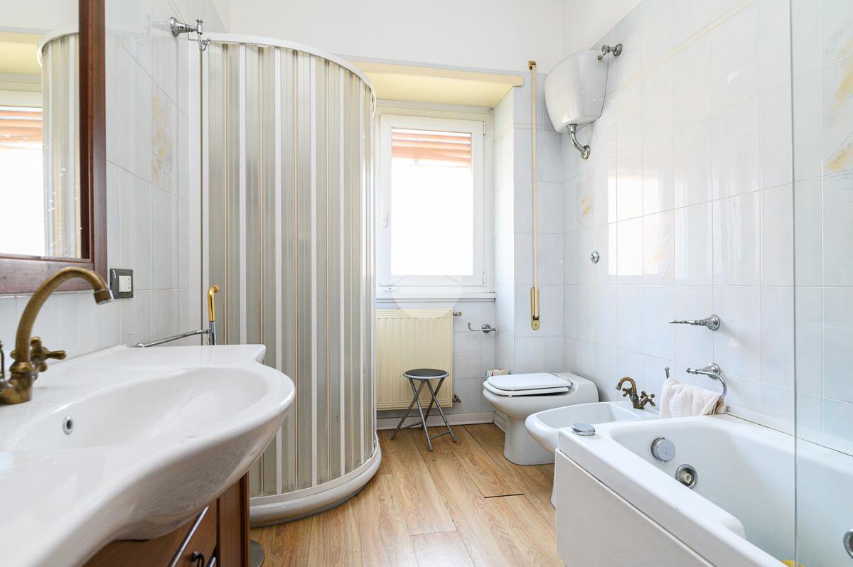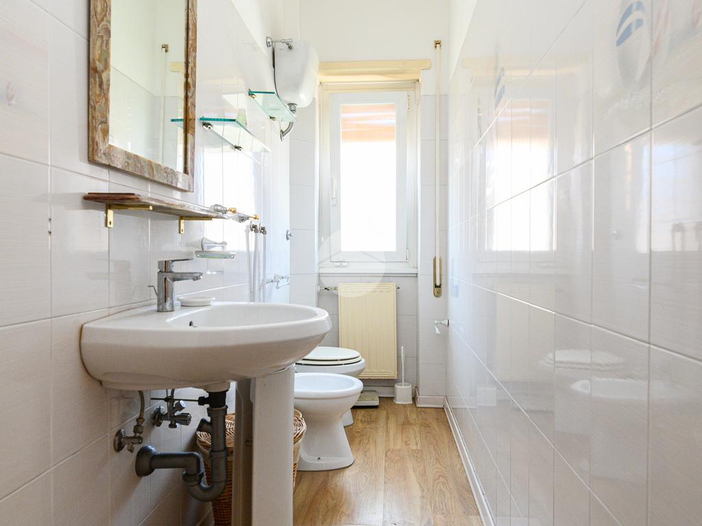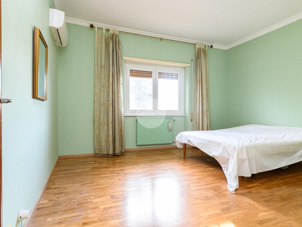 La zona notte è composta da tre camere matrimoniali, una delle quali dotata di balcone privato, e da doppi servizi finestrati. L’appartamento si presenta in buono stato interno: parquet in tutti gli ambienti, impianto idraulico rinnovato, caldaia nuova, infissi in doppio vetro (eccetto nel salone) e condizionatori già installati.